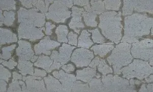 Manifestations : Réseau de fissures caractéristique en « peau de crocodile », gonflement.